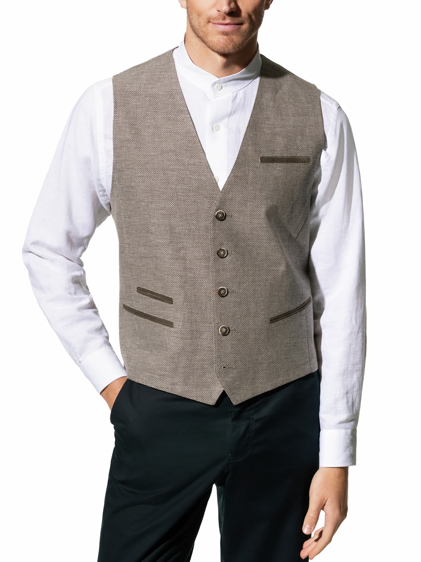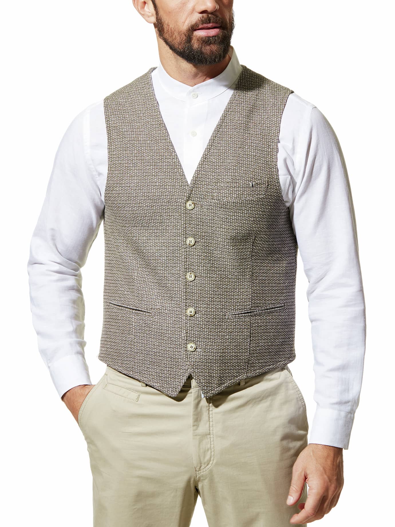 Walbusch Herren Struktur-Weste Beige mehrfarbig