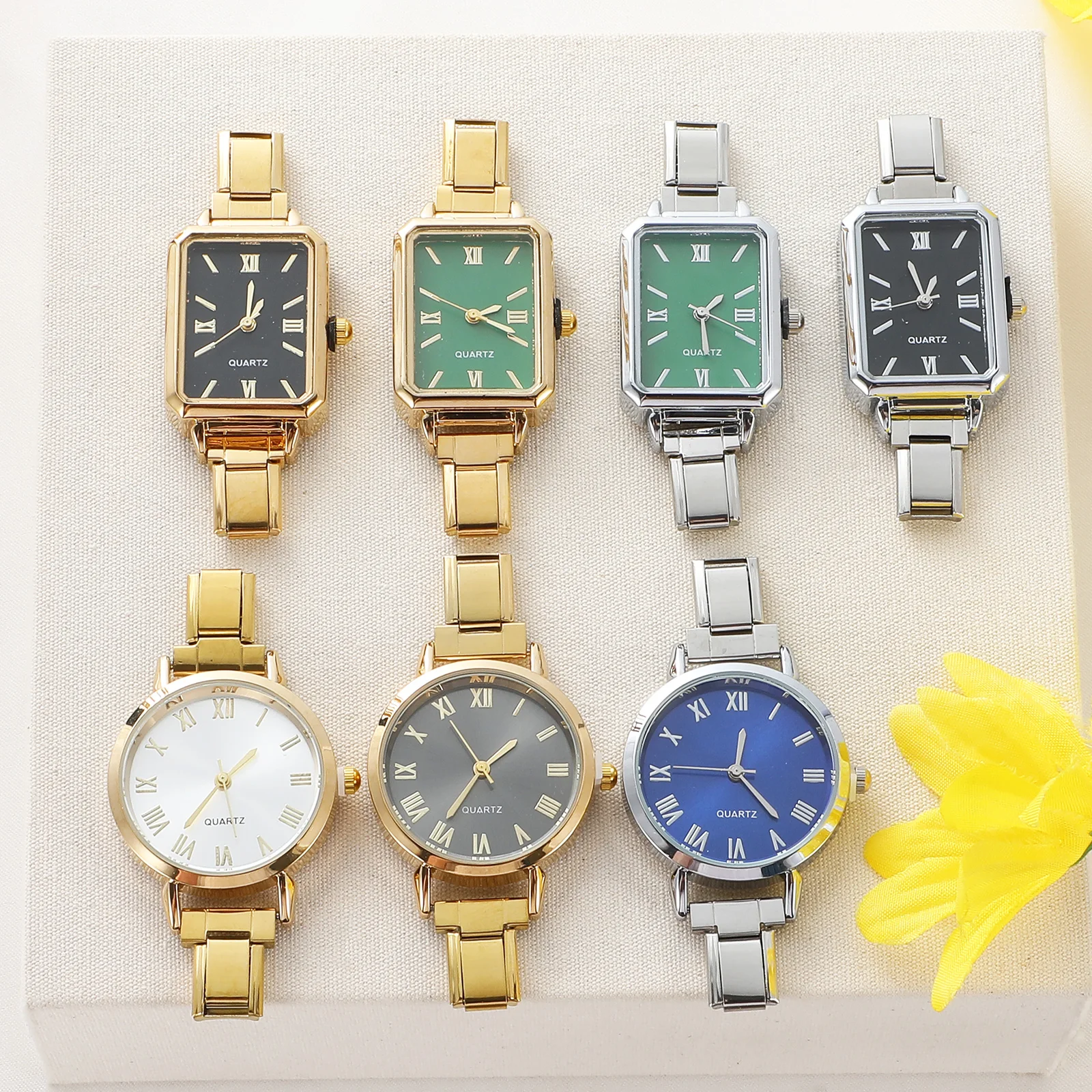 BERNY Luxus-Damenuhren, goldener Stretch-Armreif, elegantes Kleid, ...