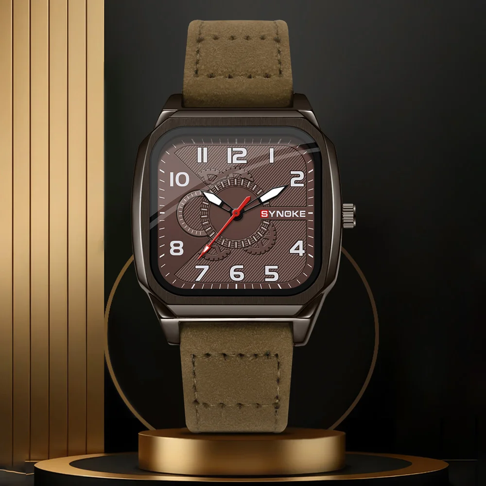 SYNOKE Beliebte Männliche Quarz Armbanduhr Militär Sport Stoßfest Leder Uhr Män...