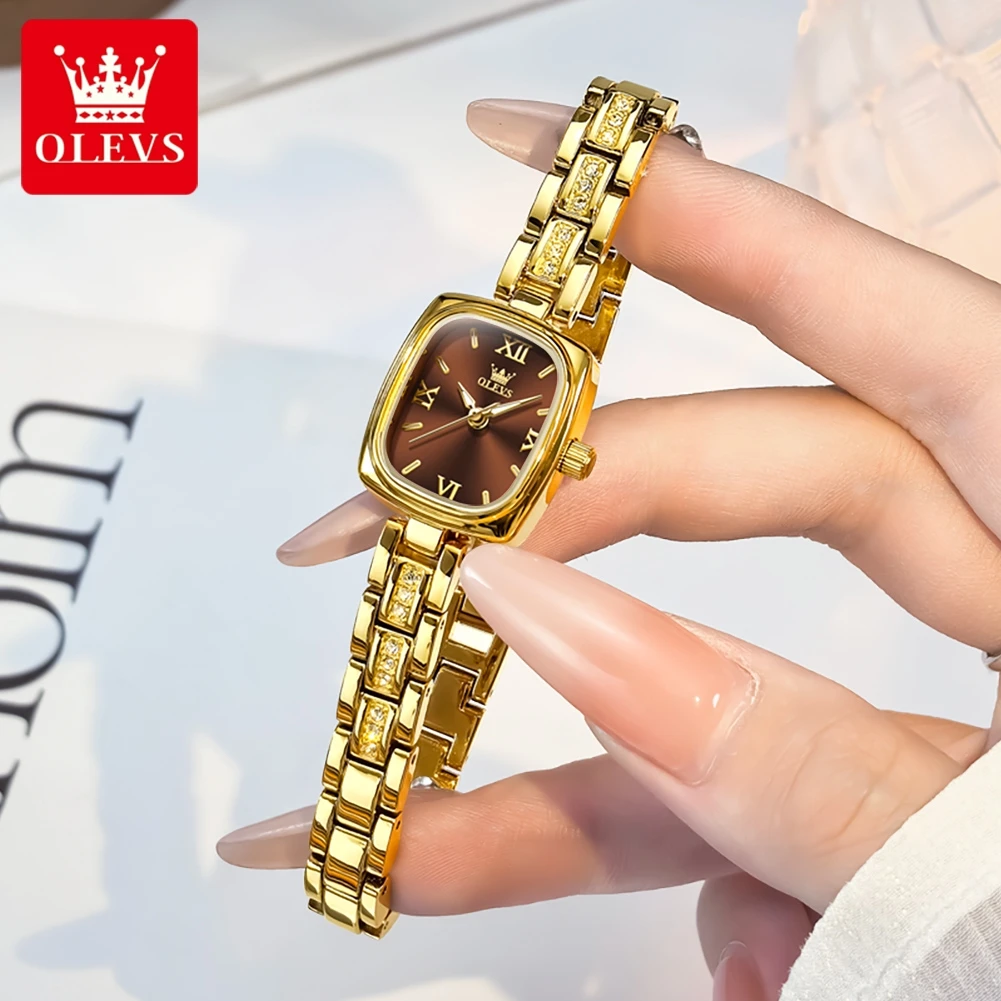 OLEVS 3695, Damenuhr, elegantes Diamant-Armband, Original-Luxus-Gold-Quadrat-Uhr, beliebte Marke, le...