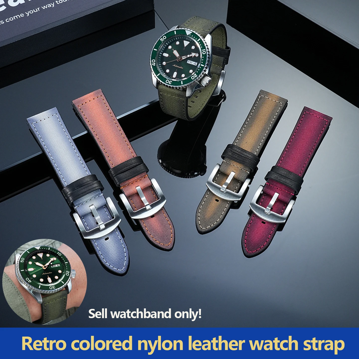 Retro-farbiges Nylon-Canvas-Uhrenarmband für Seiko/Mido/Breitl...