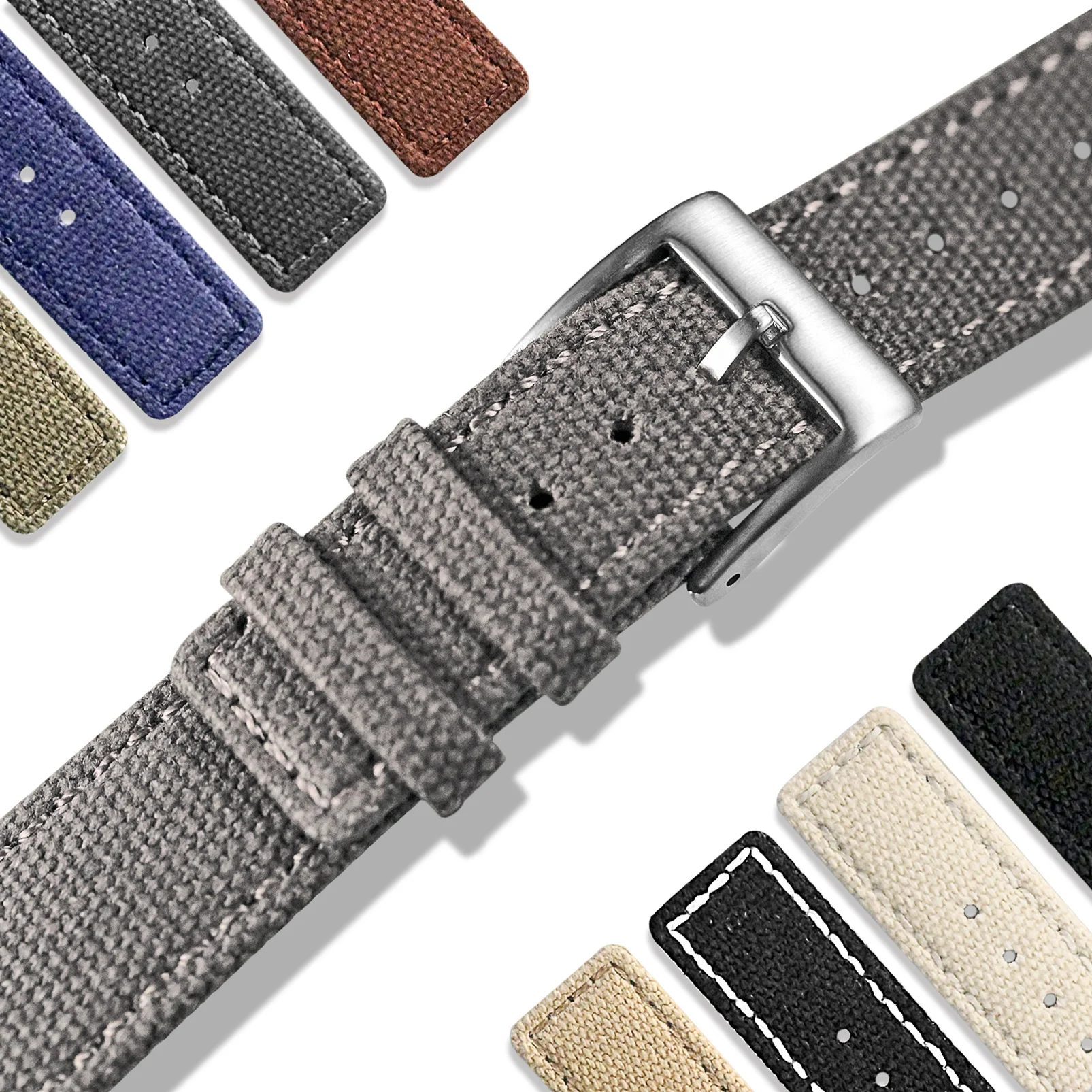 Hemsut Leinwand Uhr Bands Quick Release Grau Zwei Stücke Stoff Uhr Straps Schwere Schnalle 18mm...
