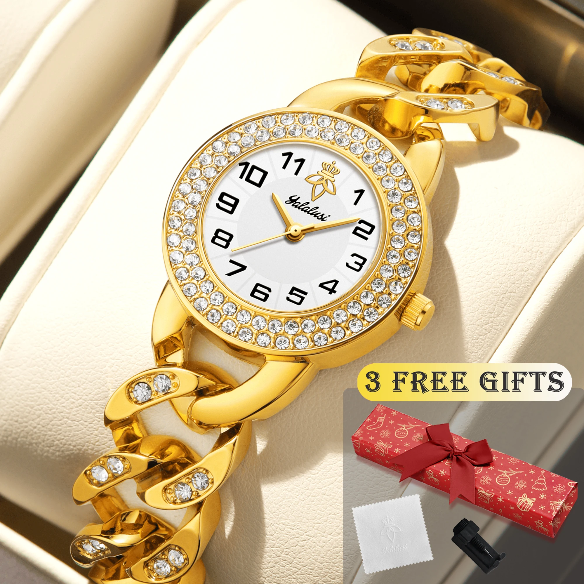 YaLaLuSi Marke 1, modische Vintage-Quarzuhr mit rundem, durchbrochenem Armband, inklusive Geschenkbo...