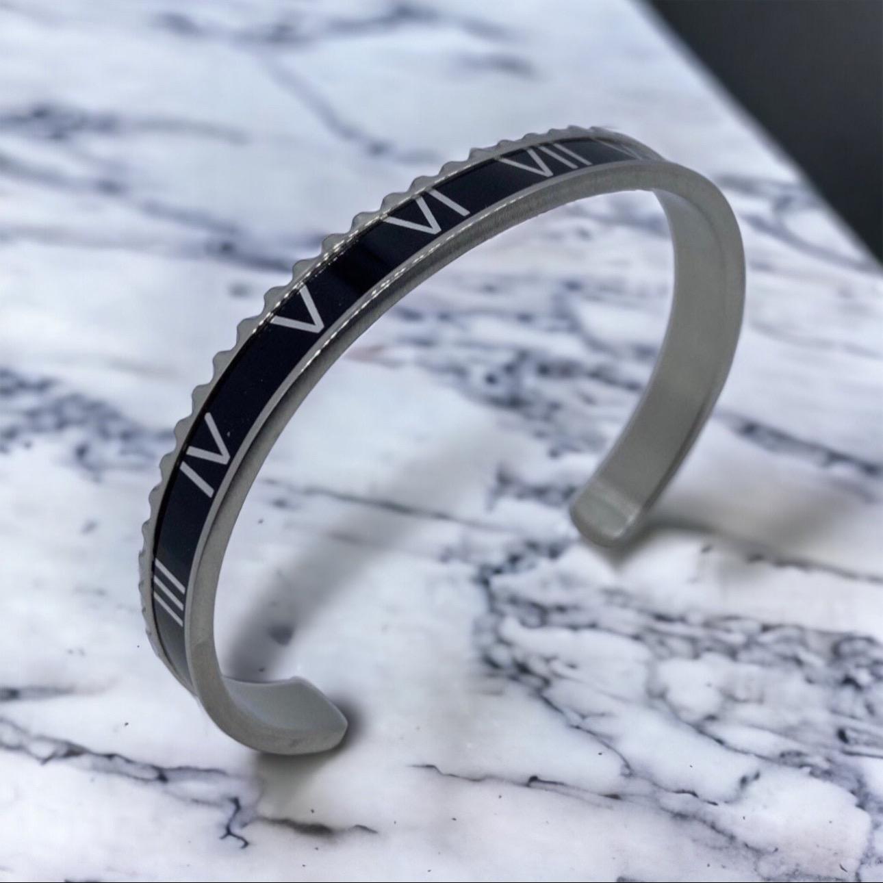 GMT Roman Blue Black Bezel Watch Bracelet Wristband, Steel Cuff, Wa...