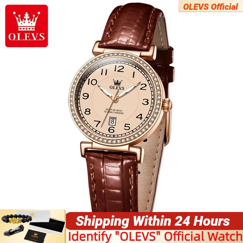 Olevs Retro Quarzuhr für Frauen bequemes Leder armband digitales Zifferblatt Kalender leuchtend...