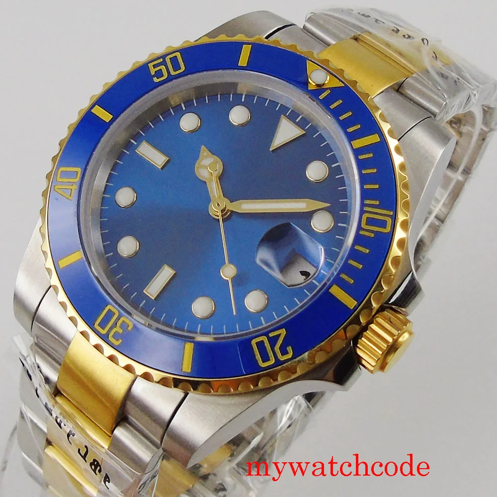 Nologo Two Tone Gold Blau Automatikuhr Herren NH35A PT5000 MIYOTA 100M WASSERDICHTE Sunburst Blaues ...