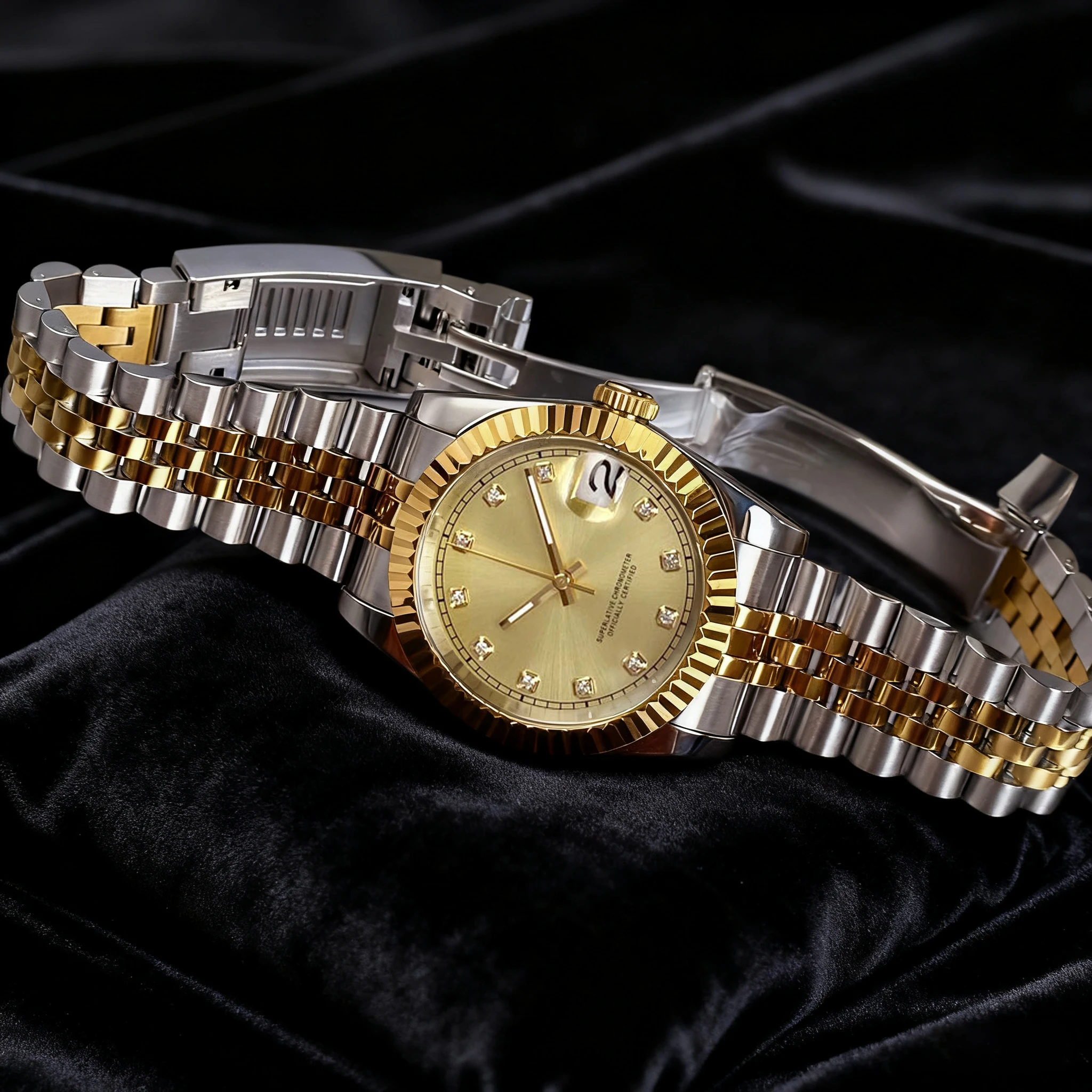 Neue Two Tone Gold 36mm NH35A Mechanische Uhr Männer Diamant Marks Zifferblatt DJ Hände Ge...