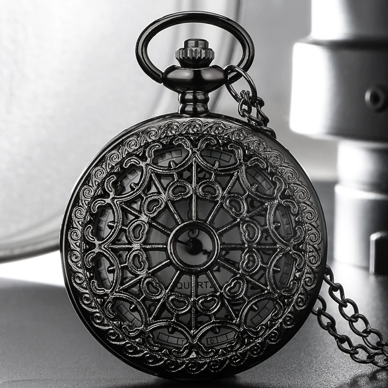 Vintage Bronze schwarz Spinnennetz Quarz Taschenuhr Geschenk für Männer Fans Souvenir Stud...