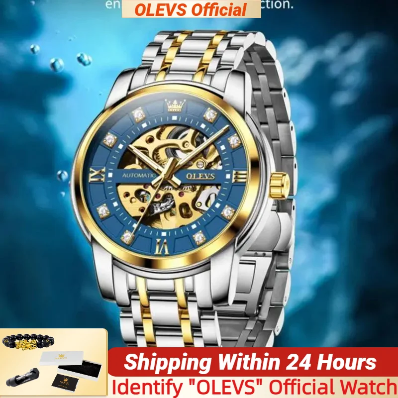 OLEVS 9901 Automatische Herrenuhren Business Skeleton Luxus Diamant...