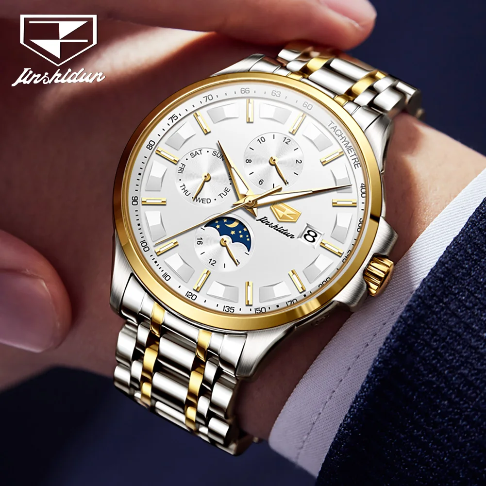 JSDUN Original Mechanische herren Uhren Wasserdicht Edelstahl Band Gold Armbanduhren Datum Automatis...