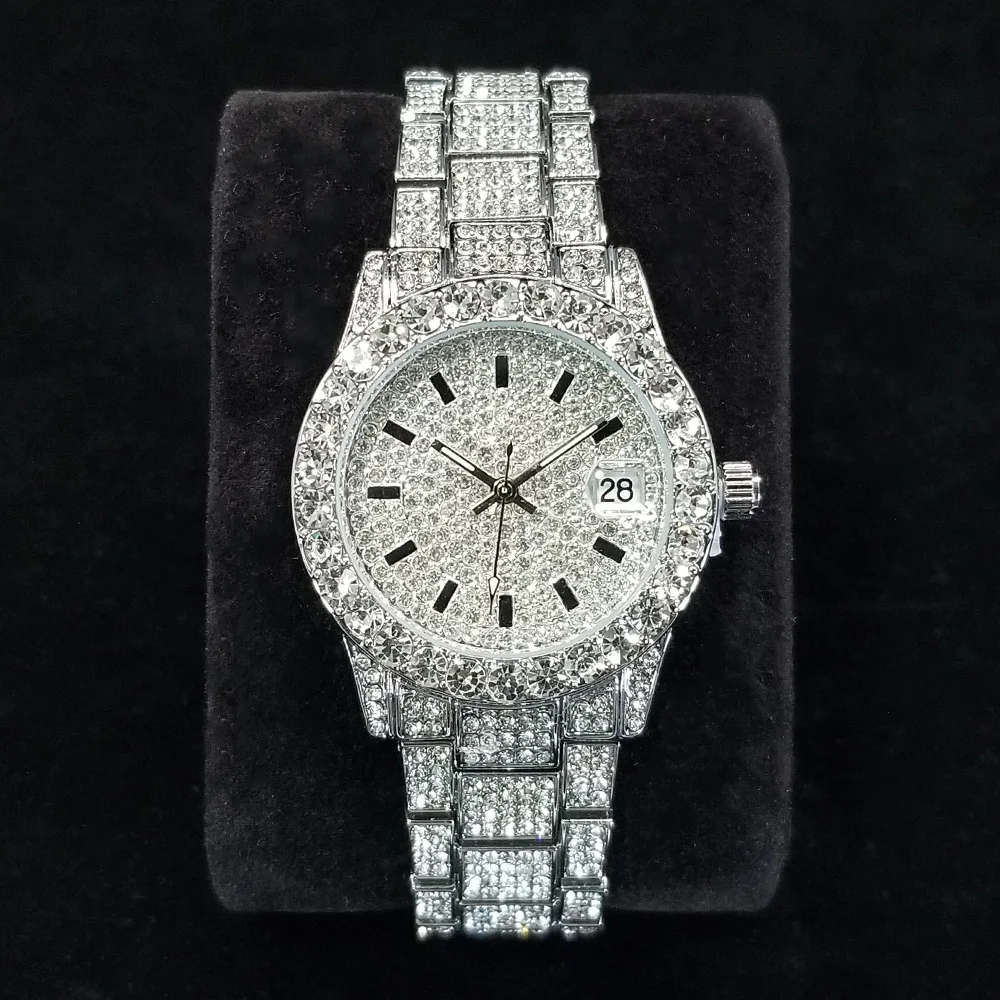 Voller Diamanten Uhren für Männer Luxus Mode Silber Iced ...