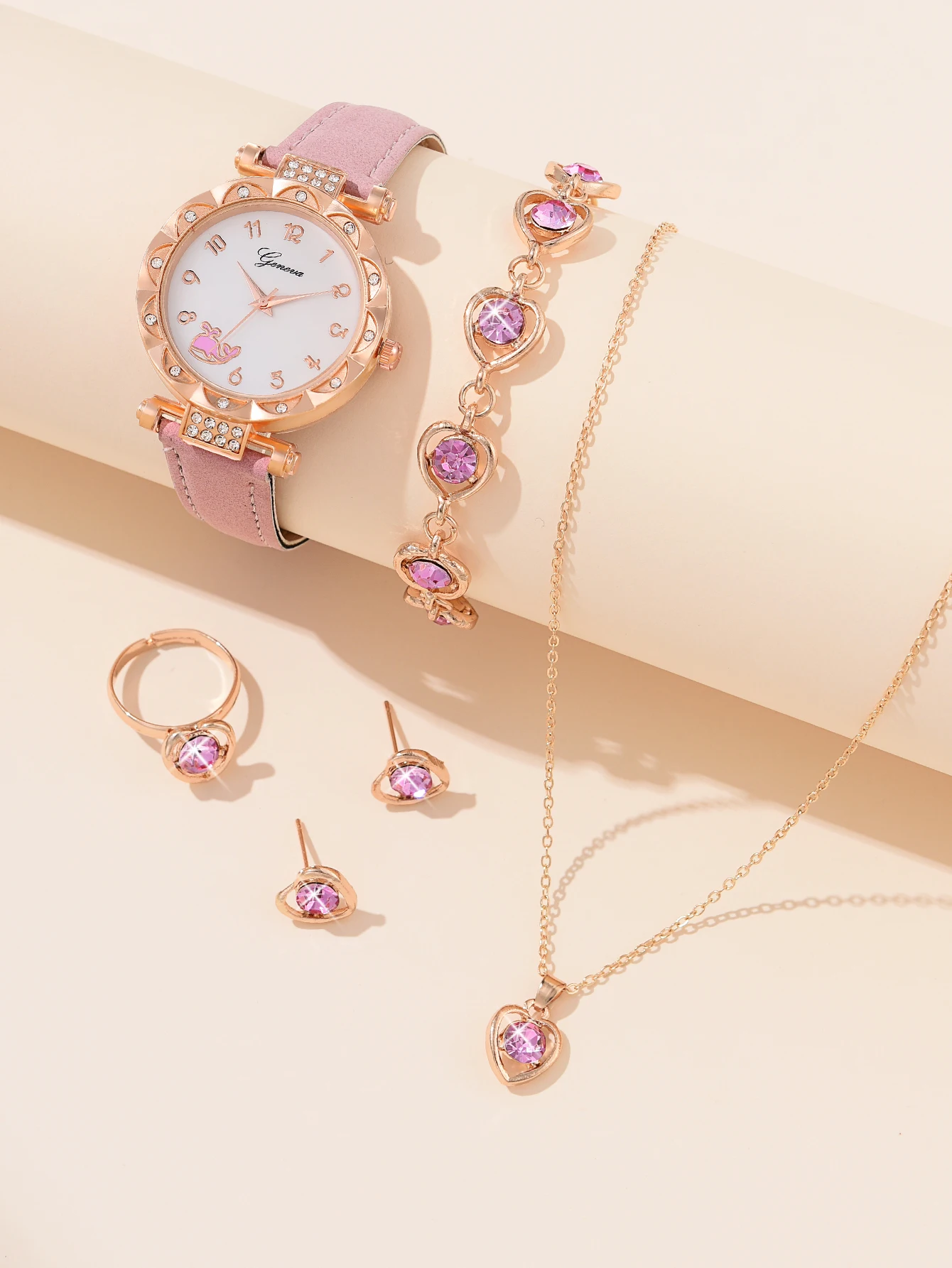 6 Stück Legierung Spitze Legierung Diamant Set Leder Wal Leder Damen Quarzuhr mit rosa Diamant ...