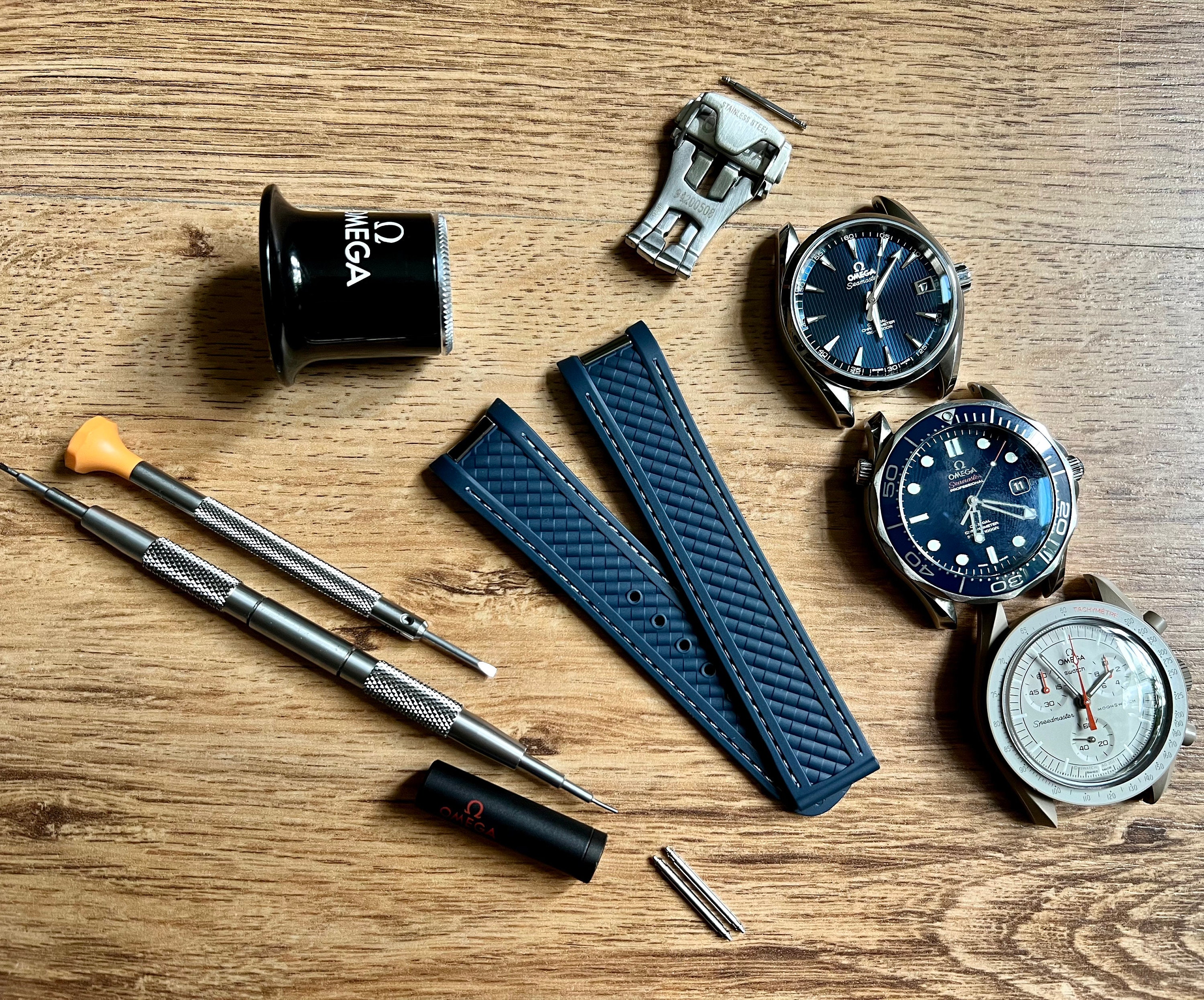 Omega Seamaster 20 mm Kautschukband Blau: Gebogenes Ende, Aqua Terr...