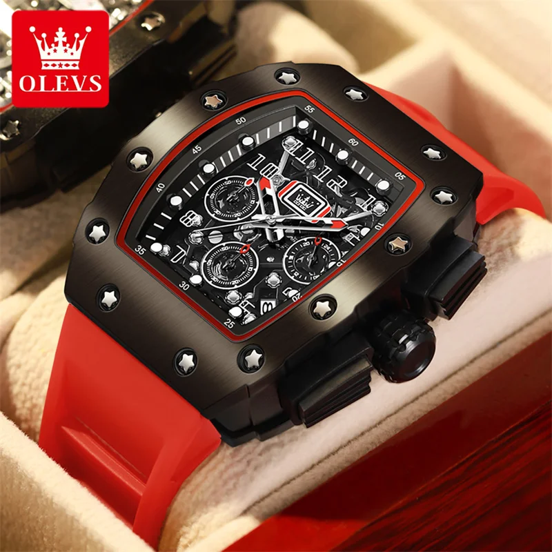 OLEVS Tonneau Form Zifferblatt Männer Luxus Marke Uhr Kalender Leuchtende Wasserdichte Uhren Ma...