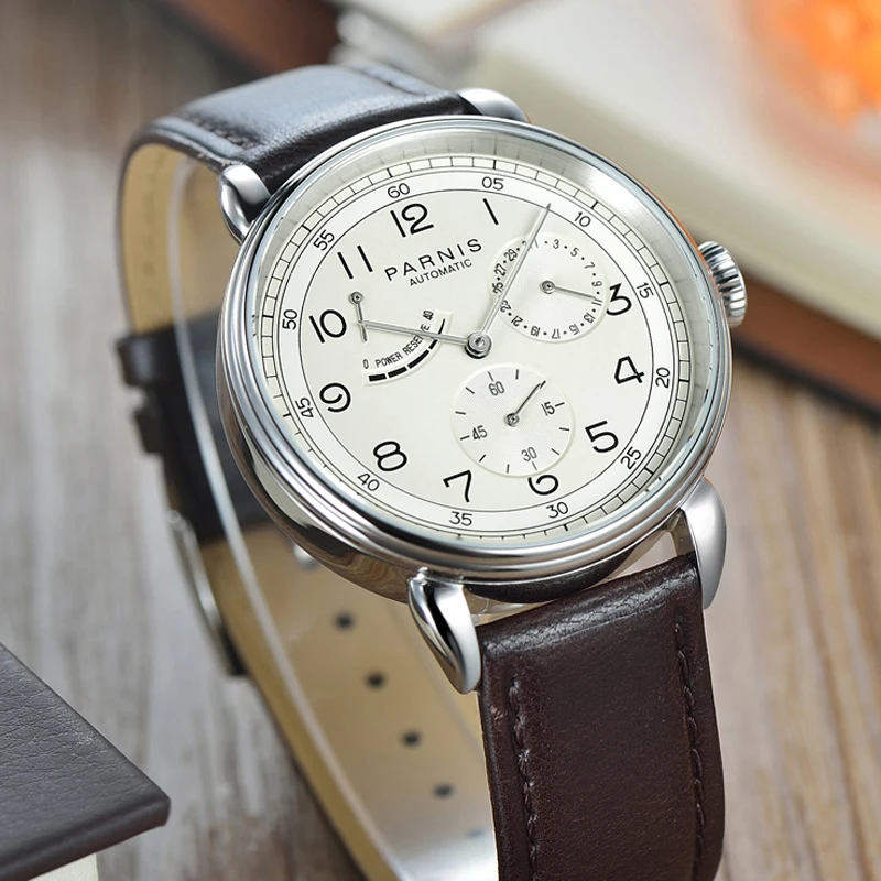 Mode Parnis 42mm Automatische Mechanische herren Uhr Leder Band Kalender Männer Uhren uhren par...