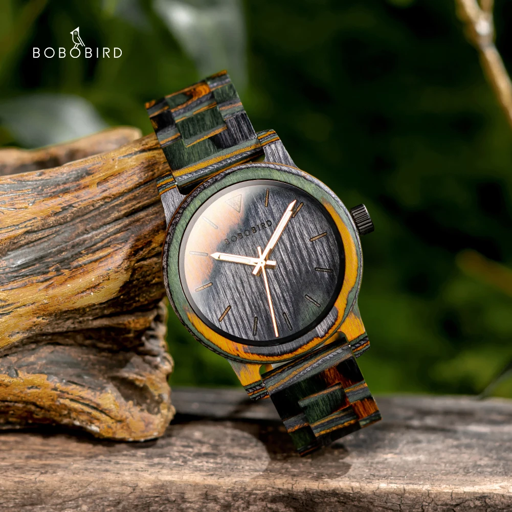 BOBO VOGEL Personalisierte Männer Quarzuhr Freizeit Mode Farbigen Holz Armbanduhr Laser Zifferb...