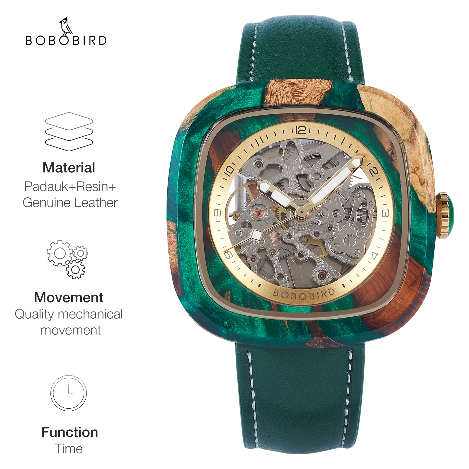 Personalisierte männer Mechanische BOBO BIRD Harz Holz Armbanduhr Angepasst Name Logo Geschenk ...