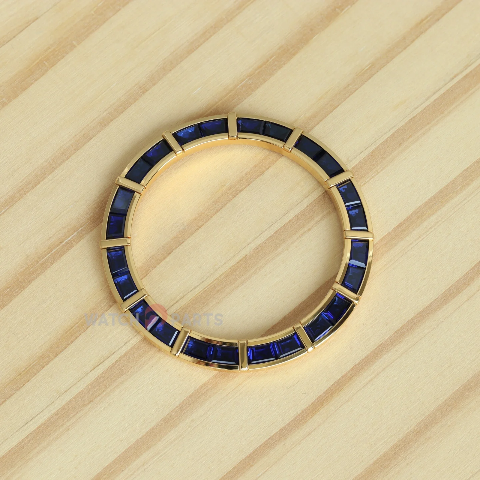 24 Baguette synthetische dunkelblaue Saphir-Diamant-Gold-Uhrenlünette für Rolex Daytona 40...