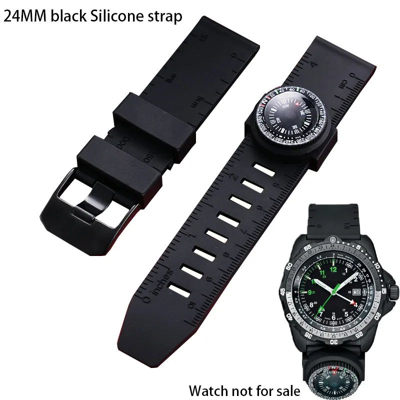 24MM schwarz silikon rubber strap FÜR Luminox militär uhr Armband 8831 Mit kompass tauchen...