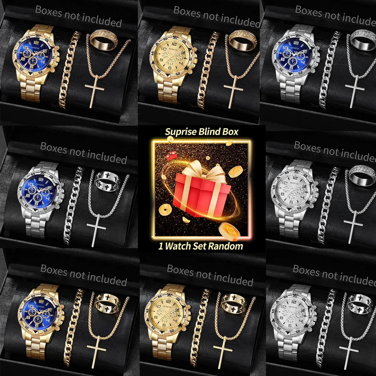 Überraschung Mystery Uhr Set Blind Box-4 Teile/satz Mode Männer Business Uhr Quarz Armband...