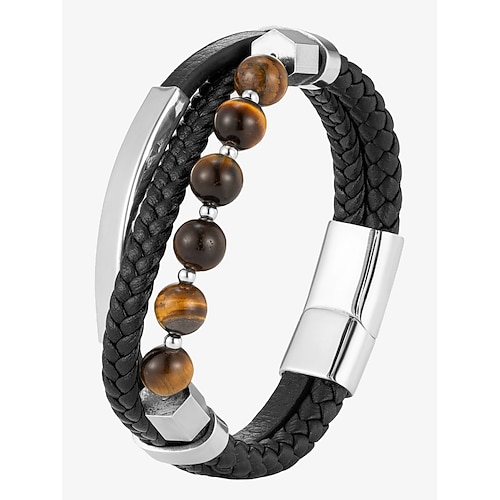 Geschlecht:Herren; Stil:Doppellagig,Punk,Mode; Schmucktyp:Armband; Material:Edelstahl,Naturstein; Ve...