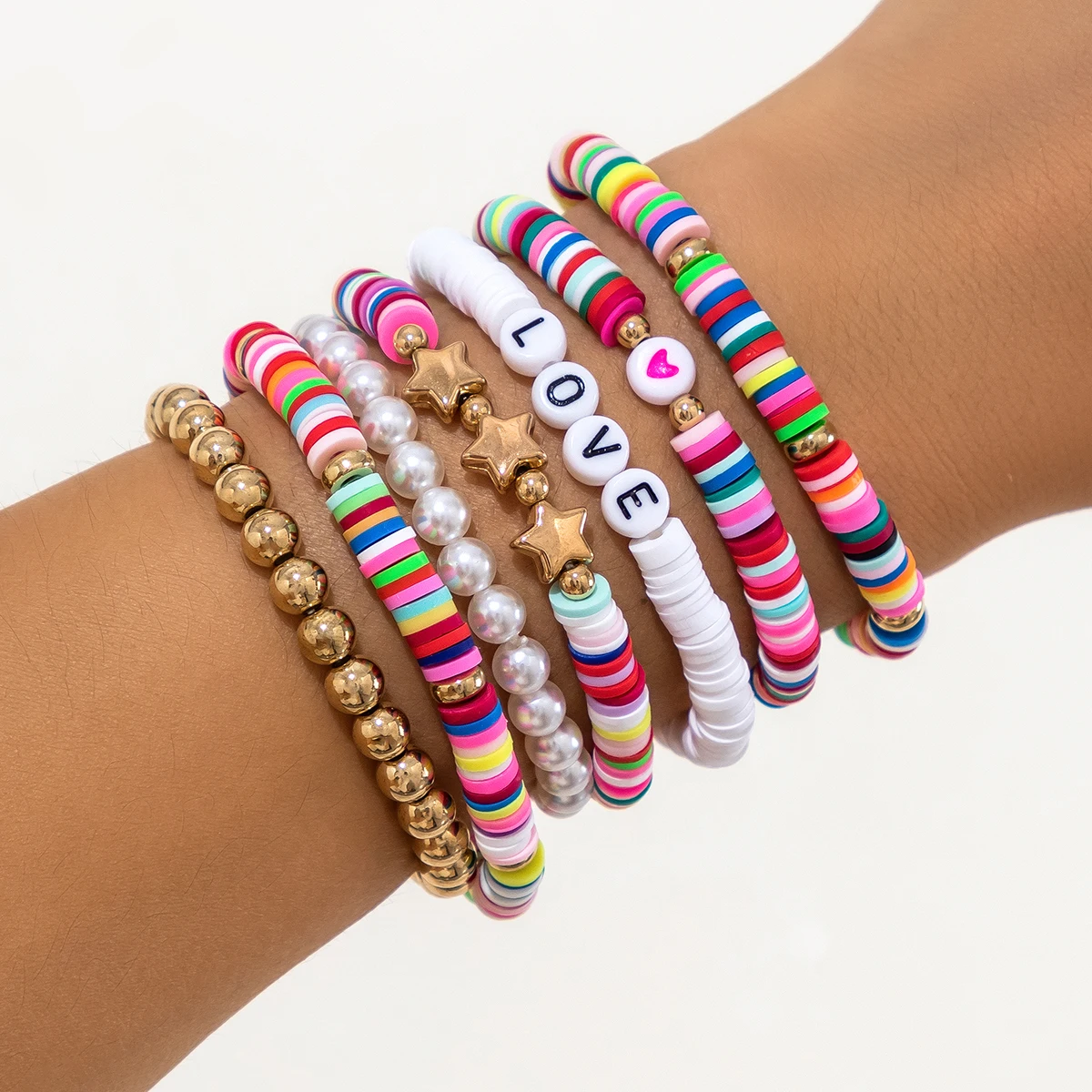 Purui 7 teile/satz böhmischen bunten Ton Perlen Armband für Frauen handgemachte Brief Perl...