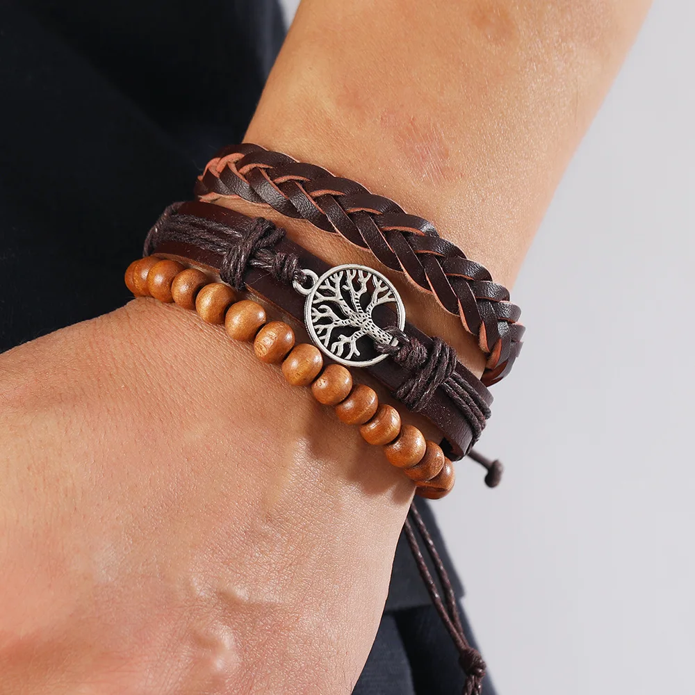 Armband für Männer, personalisiertes handgewebtes Retro-Lederarmband, DIY, fünfteilig...