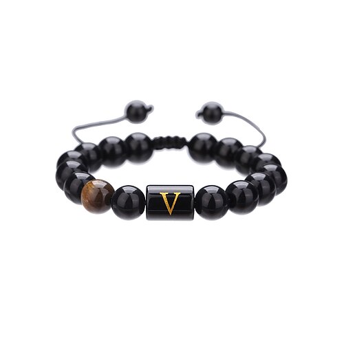 Verstellbares Herrenarmband aus Naturstein mit Alphabet-Buchstaben-...