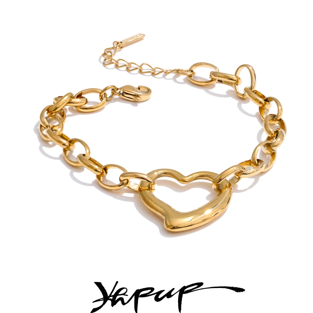 Yhpup Charm-Armband aus Edelstahl, hohles Herz, Liebeskette, Armreif, wasserdicht, poliertes Metall,...