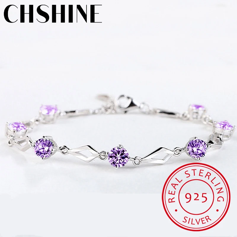 Silber 925 Schmuck Armbänder für Frauen Trendy Amethyst 925 Sterling Silber Armband Charme...