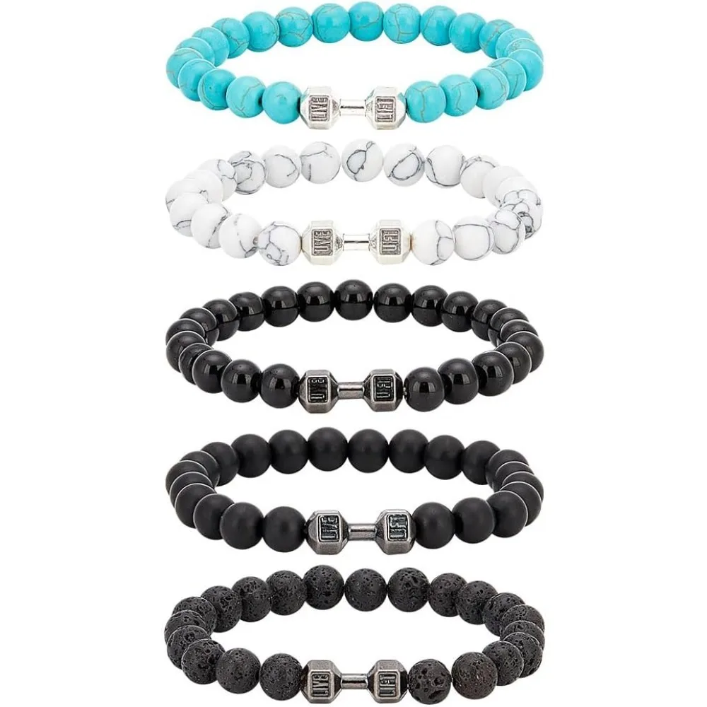 5-Stil Hantel-Armbänder-Set, schwarze Gewichtheber-Armbänder, vulkanische Lavastein-Armb&a...