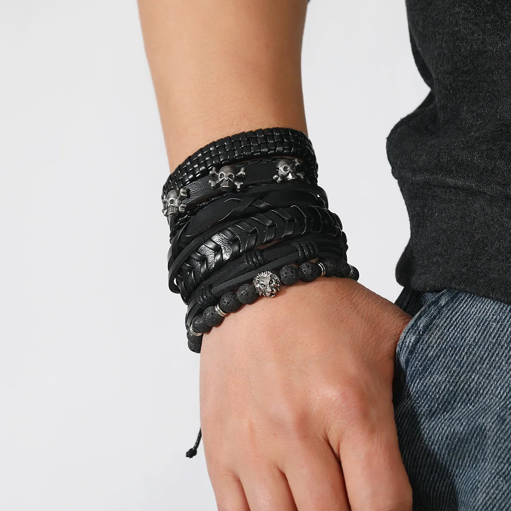 Leder armband für Männer Schädel Löwenkopf Zubehör Armband Vulkans tein Per...