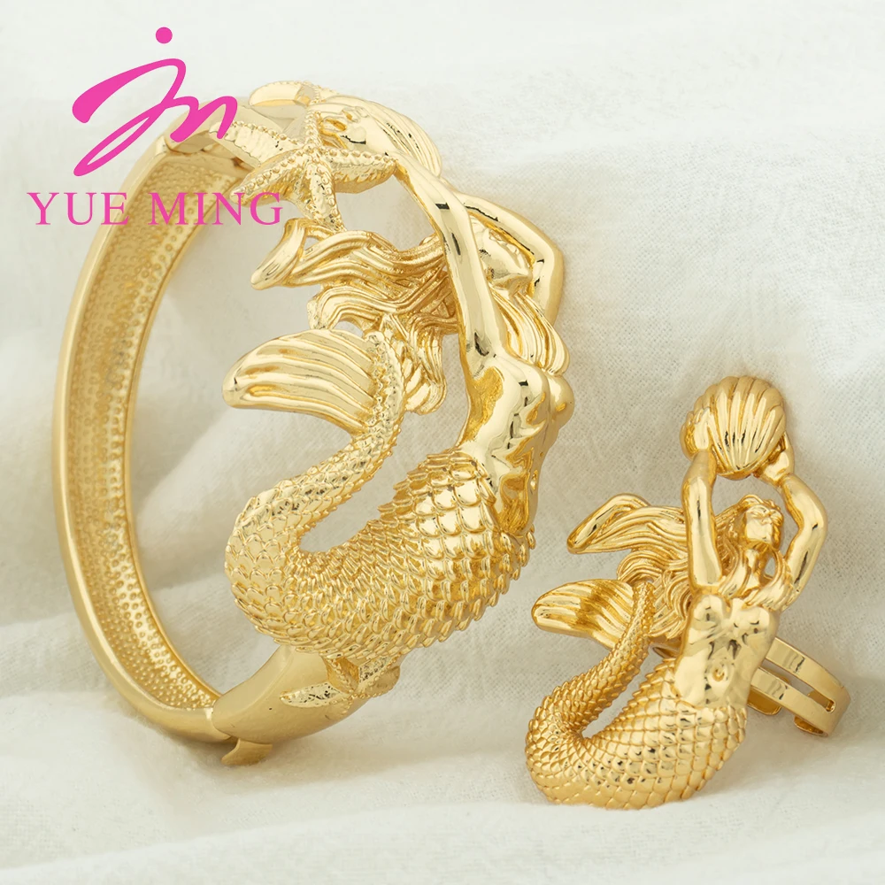 Ym afrikanisches Gold Farbe Armreifen mit Ring Nigeria Braut Hochzeit Bankett Charme Meerjungfrau Ar...