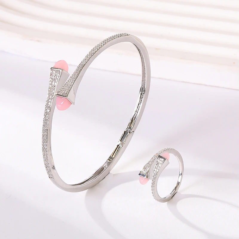 Trendy Luxus Ms Armreif Ring Set Dubai Braut Schmuck Sets Für Frauen Hochzeit Partei Zirkon Tie...