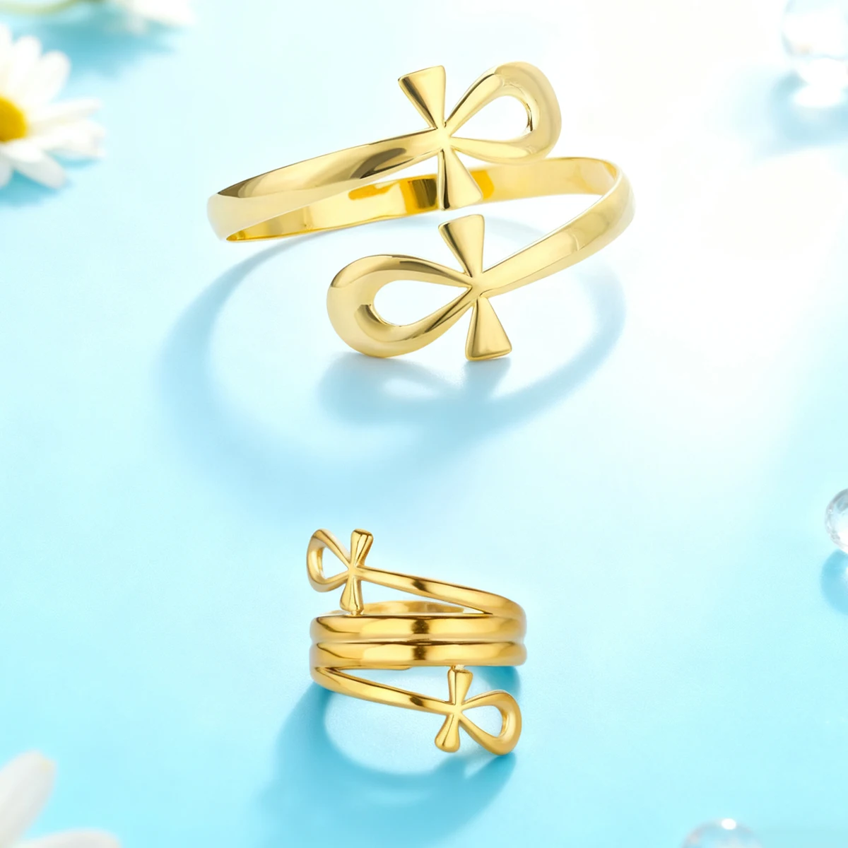 Armreif und Ring, Kreuz-Schmuckset für Damen und Herren, vergoldeter Edelstahl, Manschettenarmb...