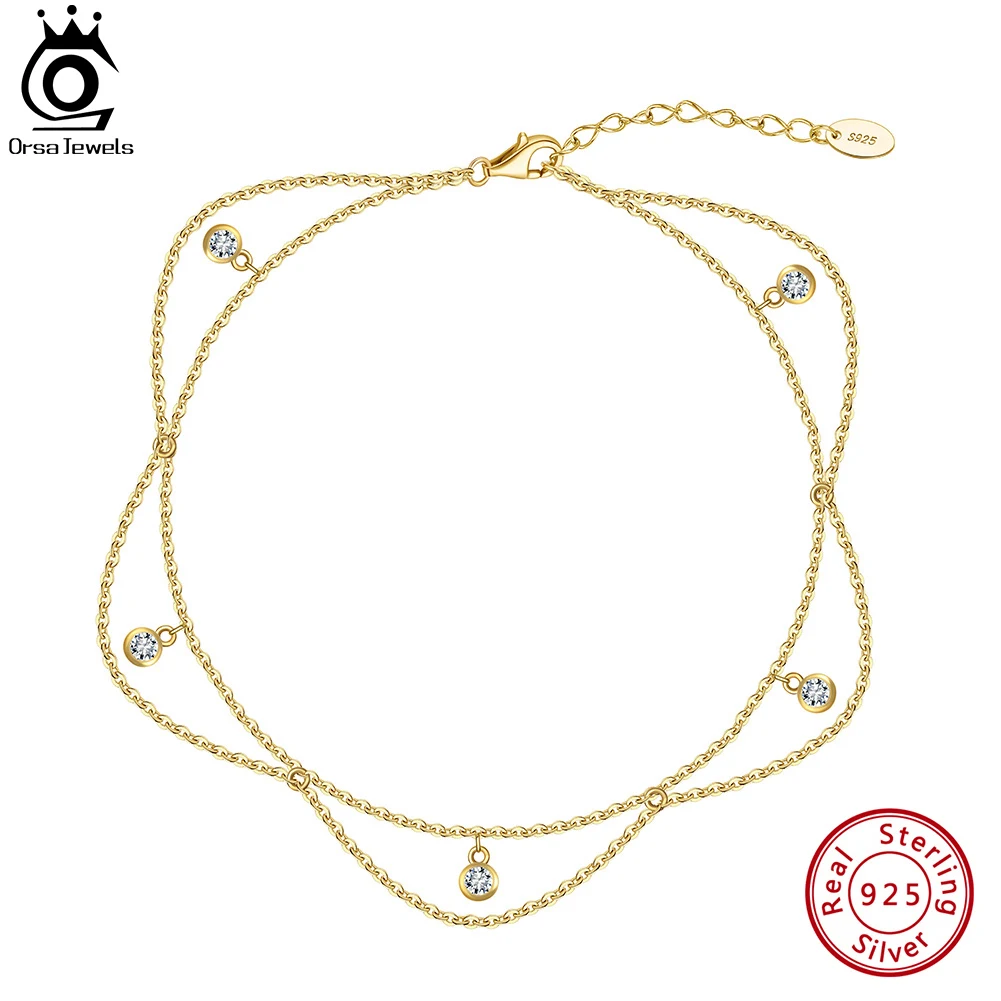Orsa Juwelen 14 Karat Gold runde Zirkonia baumeln Kabel kette Fußkettchen verstellbare lange K...