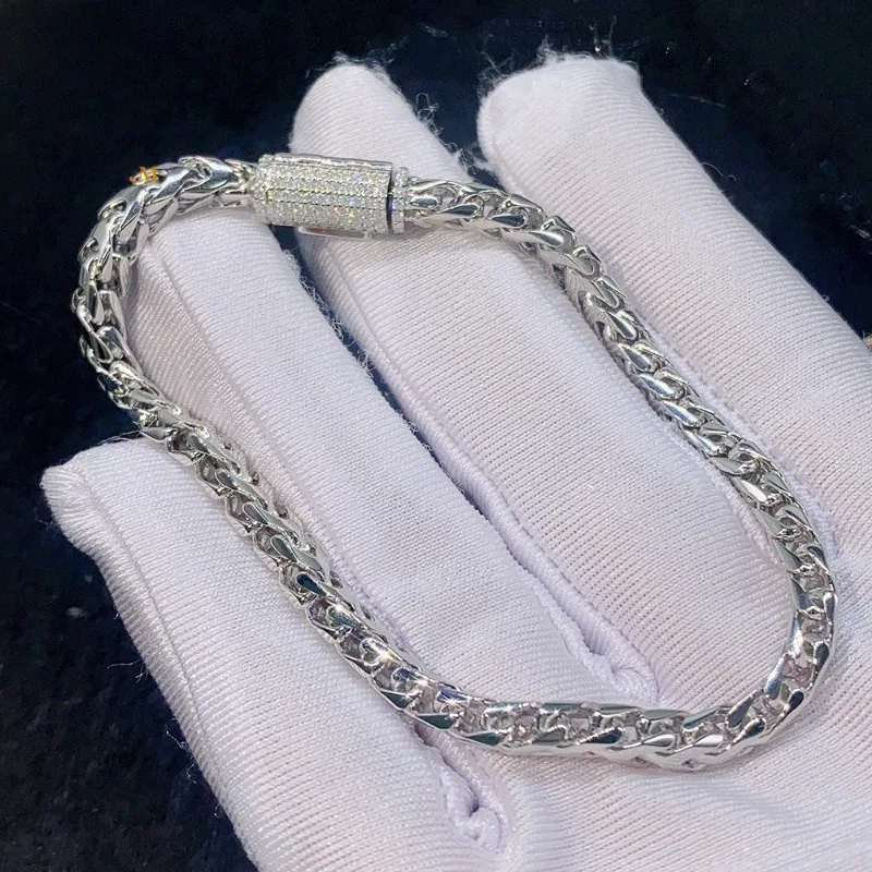 HipHop 4mm d Farbe Moissan ite Franco Link Halskette 925 Sterling v...