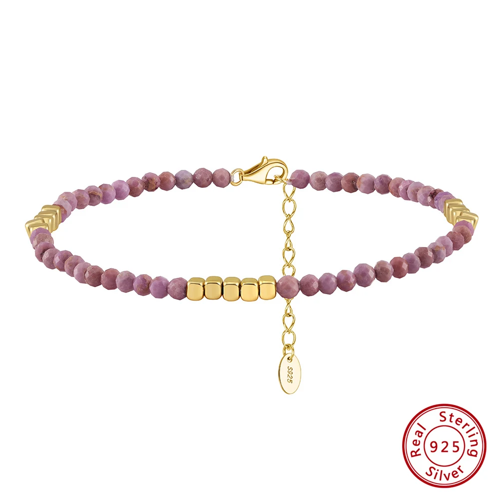 Kuss Mandy echte 925 Sterling Silber lila Glimmer Fußkettchen Kette 14 Karat Gold Fuß Ar...