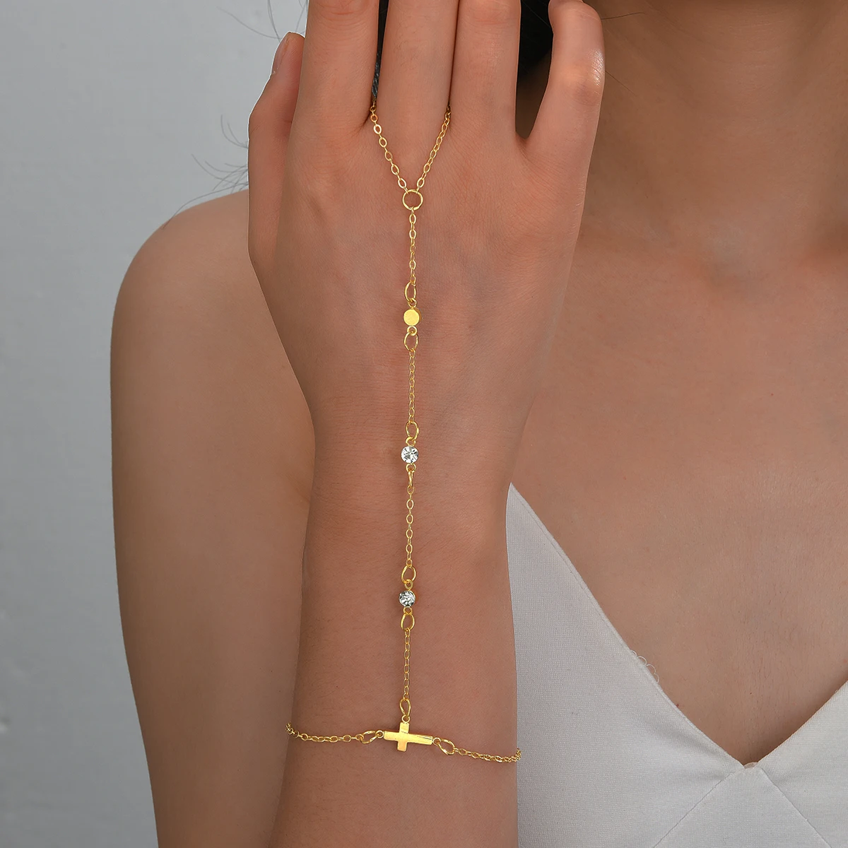 Mode Einfache Gold Farbe Hand Kette für Frauen Vintage Elegante Kreuz Charme Zirkon Armbän...