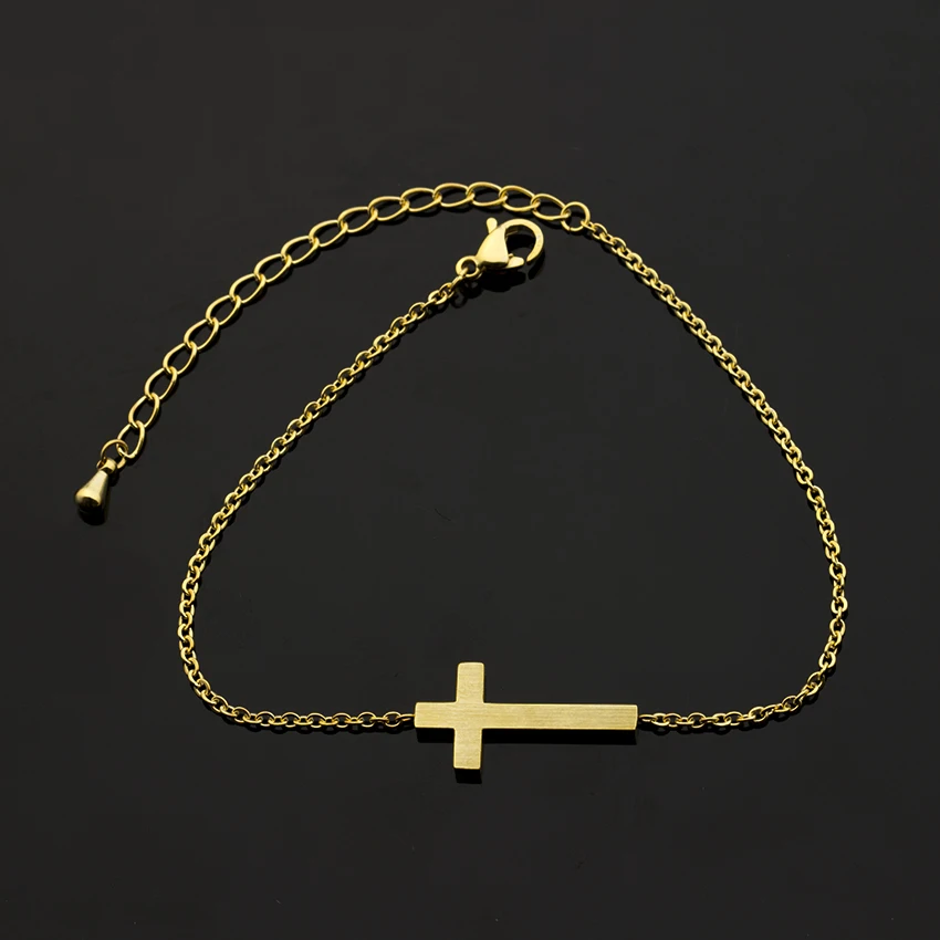DIANSHANGKAITUOZHE Fuß Schmuck Gold Farbe Bein Kette Edelstahl Kreuz Armbänder Zubehö...