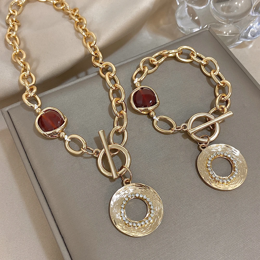 DODOHAO Kristall Link Kette Kreuz Anhänger Halsketten Armbänder Mode Schmuck Sets Gold Far...