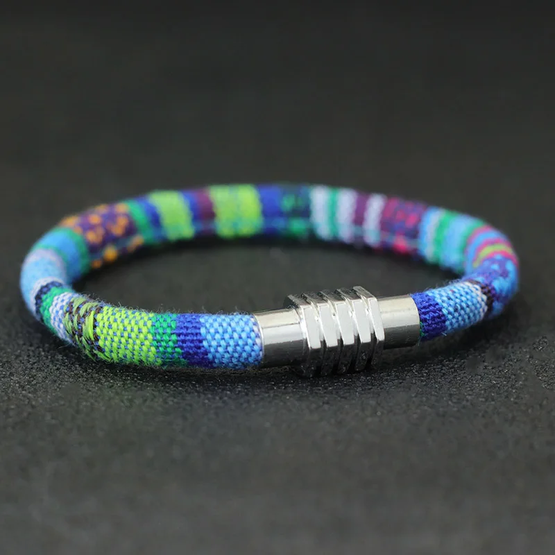 Böhmen 6mm Ethnische Stoff Seil Armband Männer Frauen Silber Farbe Magnet Schnalle Handgem...