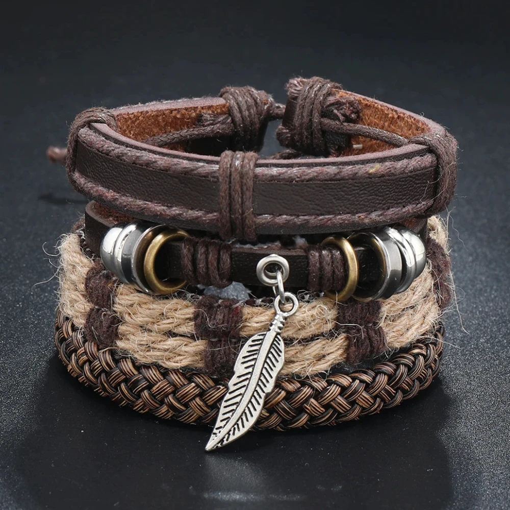 Blatt Anhänger Böhmen Leder Armbänder für Männer Frauen ethnischen Geflecht...