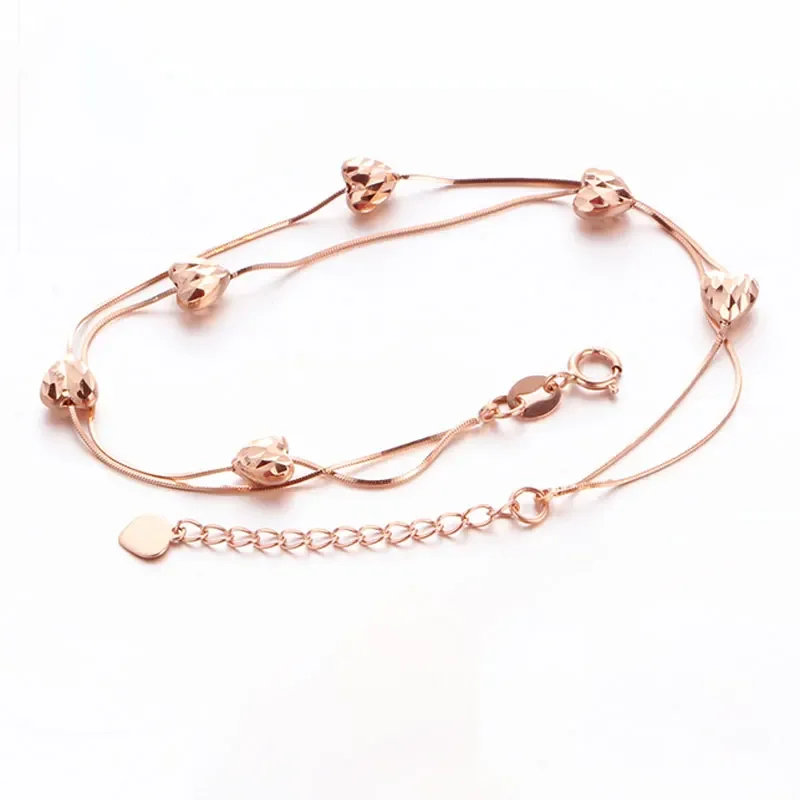 585 Roségold Doppels chicht Schlangen knochen kette Herz glänzendes Armband für Dam...
