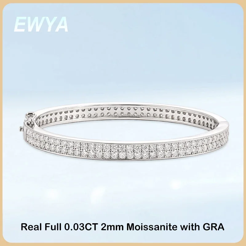 EWYA Neu In Echt D Farbe Volle 2mm 0,03CT Moissanite Tennis Armband Für Frauen S925 Silber &Uum...