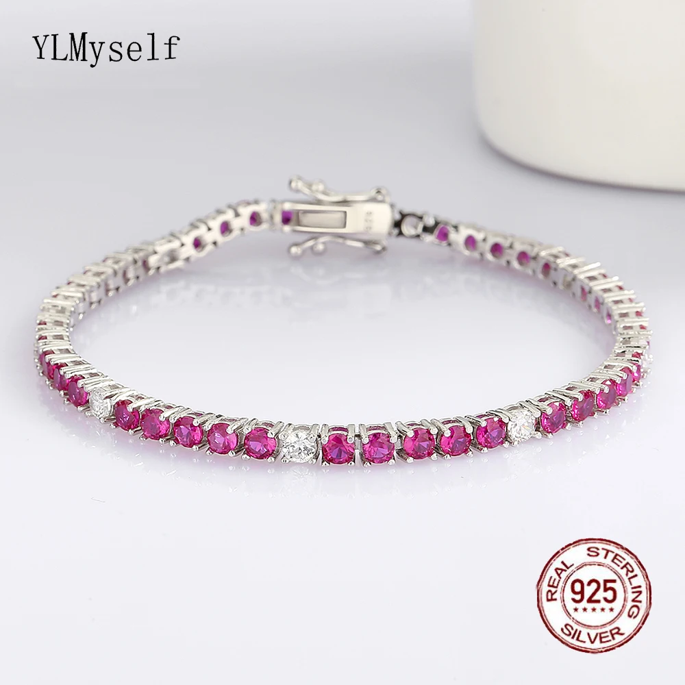Solide Echt 925 Silber Tennis Armband 3MM Rubin Fuchsia Rosa Mix Weiß Cubic Zirkon 15-21 CM Ke...