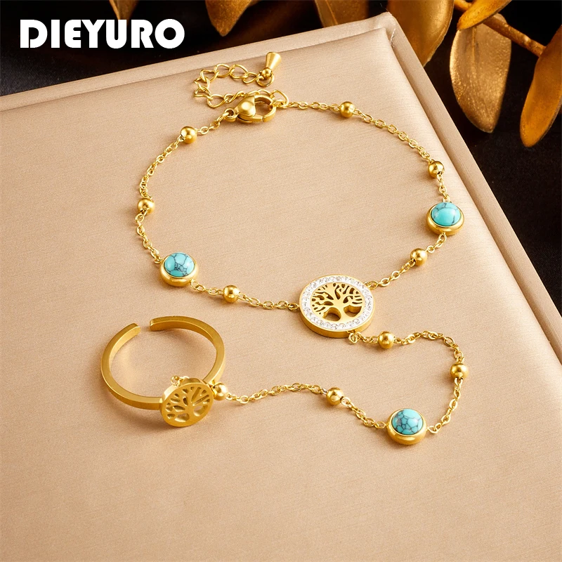 Dieyuro 316l Edelstahl Lebensbaum Finger kette Armband für Frauen Mädchen Mode neuen Schmu...
