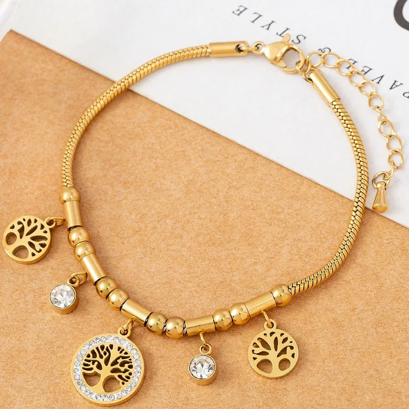 Edelstahl Charm Armband Lebensbaum Weiß Zirkon Anhänger ...