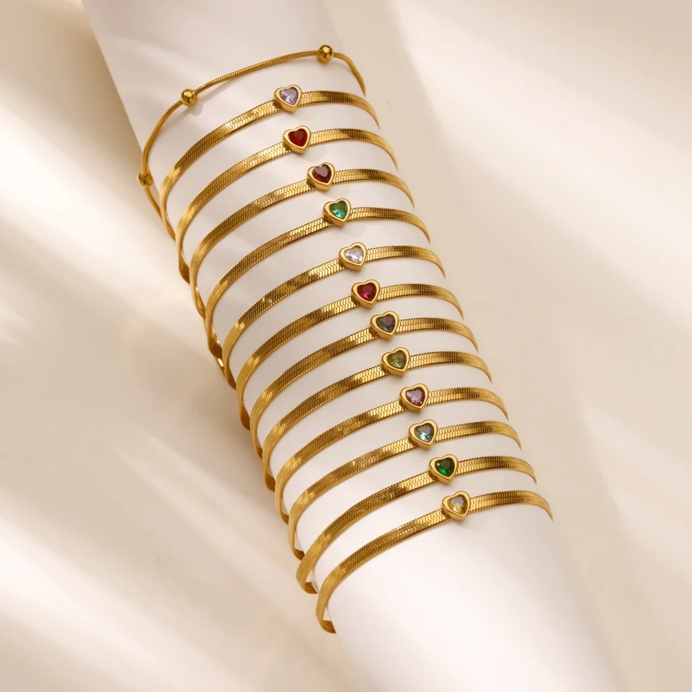 Farbige Zirkon-Herz-Armbänder für Frauen, goldfarben, Edelstahl, 12. Geburtsstein-Herz-Arm...