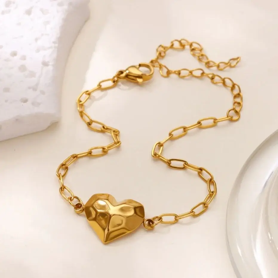 Edelstahl-Herz-Armband für Frauen, goldfarben, geometrisches Herz-Armband, luxuriöser Desi...